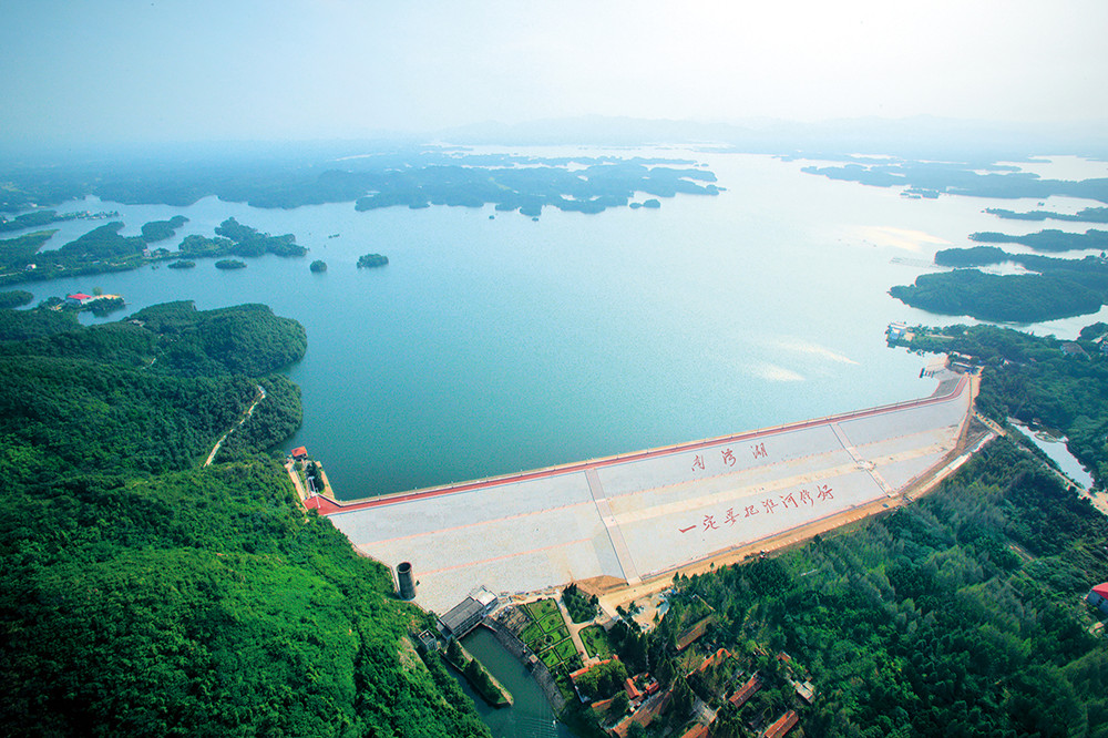 南灣水庫(kù)是建國(guó)初期淮河流域治理總體規(guī)劃的五座重點(diǎn)水庫(kù)之一,位于信陽(yáng)浉河干流上??値?kù)容13.55億m3,為粘土心墻砂殼壩。以其庫(kù)容大、水質(zhì)好、風(fēng)景美而聞名,2011年入選首批國(guó)家水利風(fēng)景區(qū)。獲治淮工程優(yōu)秀設(shè)計(jì)二等獎(jiǎng)。