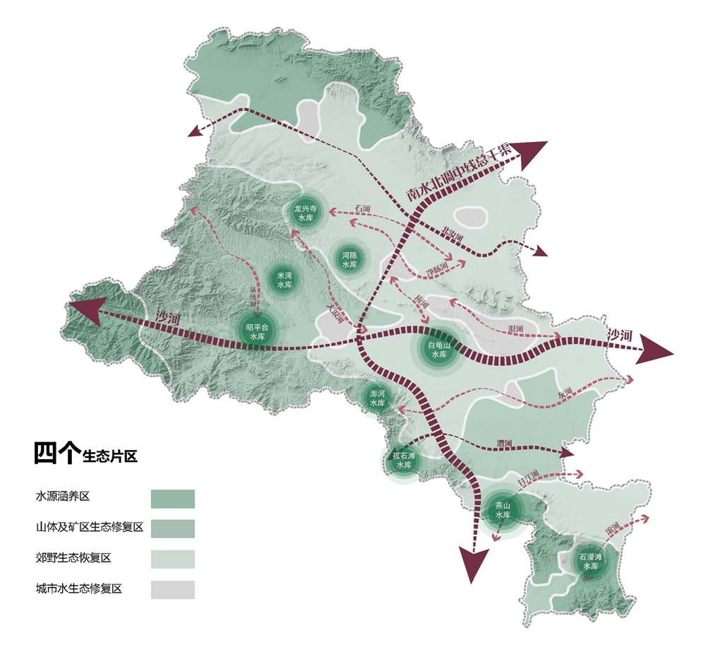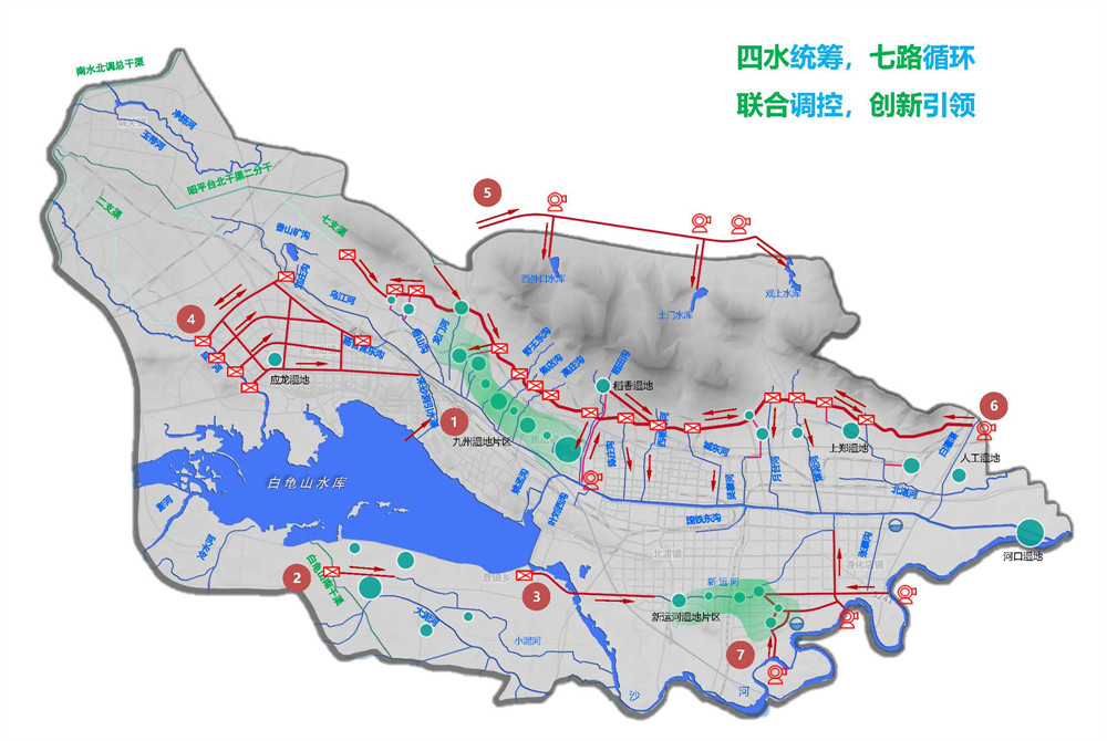 《平頂山市全域循環(huán)生態(tài)水系規(guī)劃》是河南省第一個(gè)采用公開競標(biāo),確定中標(biāo)單位的地區(qū)性水利綜合規(guī)劃項(xiàng)目,是引導(dǎo)平頂山市未來水利工作的頂層規(guī)劃,規(guī)劃提出了“四維連通,立體循環(huán)”的生態(tài)水網(wǎng)概念,確定了“一縱四橫九脈連通,三源五湖一網(wǎng)循環(huán)”水系格局。