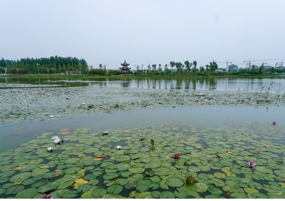 工程位于中牟縣雁鳴湖鎮中心區域,工程包括運糧河和引水渠(小雁河),其中運糧河治理長度4.3km。占地面積約1686畝,是融合水利工程、生態工程、景觀工程、水系補源工程為一體的綜合性工程,工程總投資2.69億元。景區共分柳偎暖坪、飛雁落洲、水鏡月明、雁月碼頭等十個主要景點,塑造了河、湖、溪、島等自然形態元素與亭、臺、廊、榭等人工形態元素,共同構成一幅自然山水畫卷。