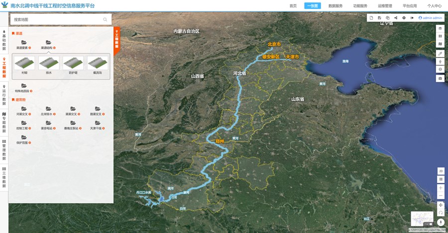 南水北調中線干線工程時空信息云平臺,實現中線干線工程運行管理全要素信息的實時查詢與分析