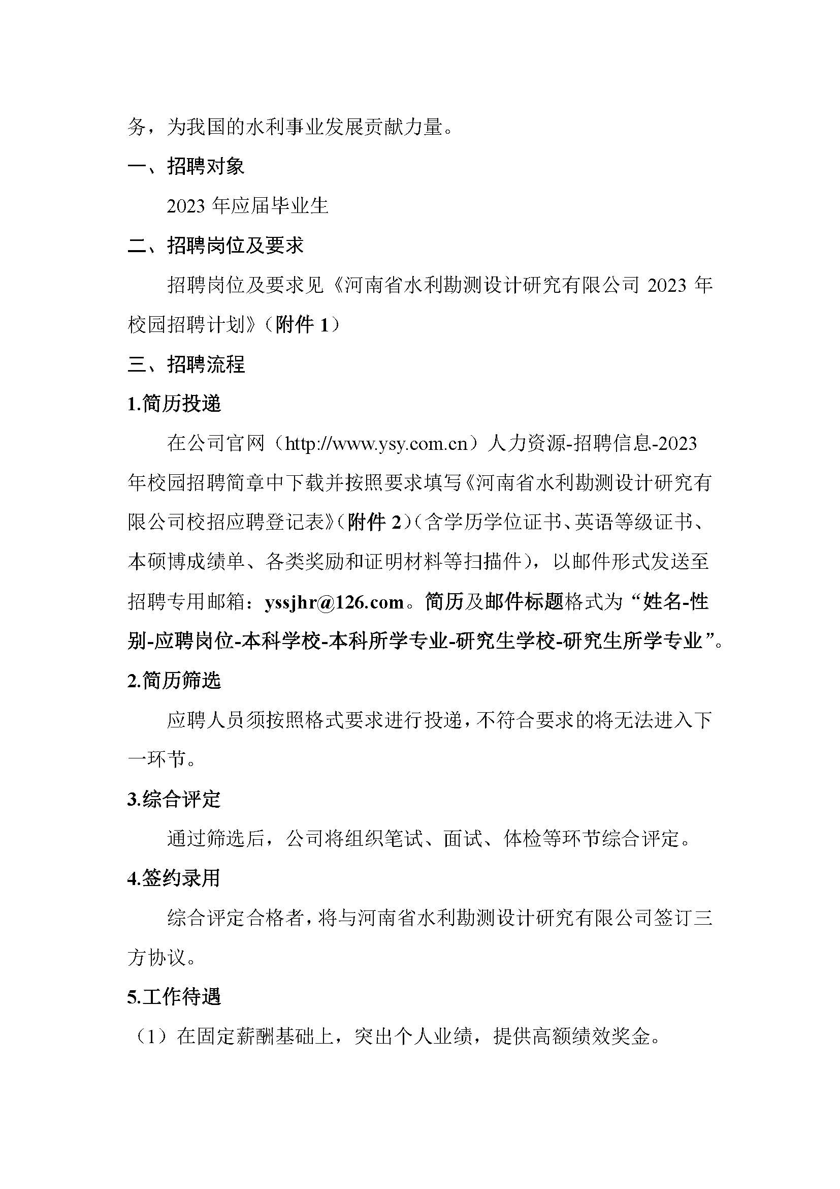 附件1:河南省水利勘測設計研究有限公司2023年校園招聘計劃.pdf