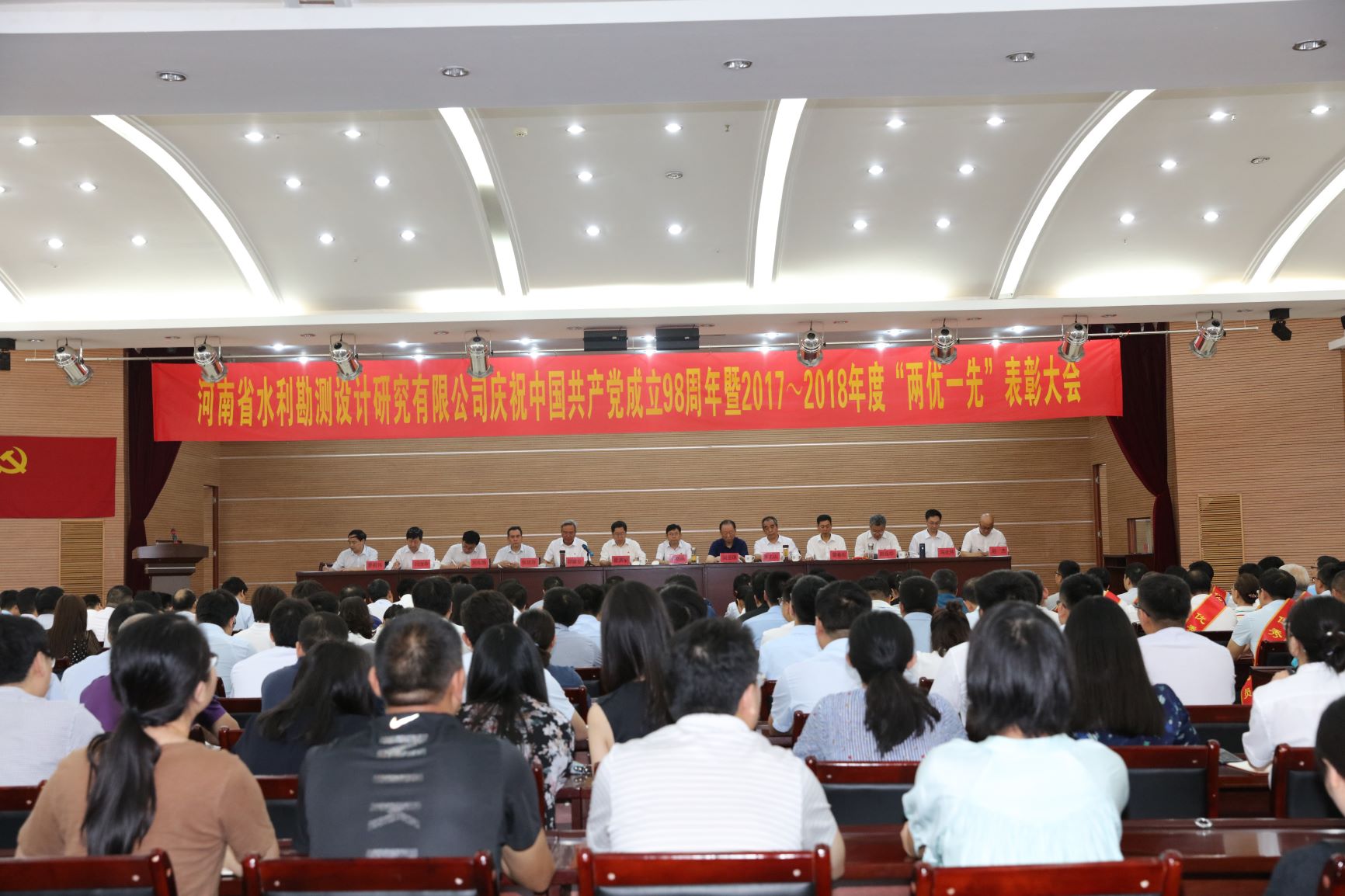 6月28日上午,河南省水利勘測設計研究有限公司慶祝中國共產黨成立98周年暨“兩優一先”表彰大會隆重舉行。公司200余名黨員齊聚一堂,大家整齊著裝、胸佩黨員徽章,共同慶祝中國共產黨98歲華誕。水利廳副廳級領導、總工程師李斌成、廳直機關黨委副書記劉亞琪出席大會。