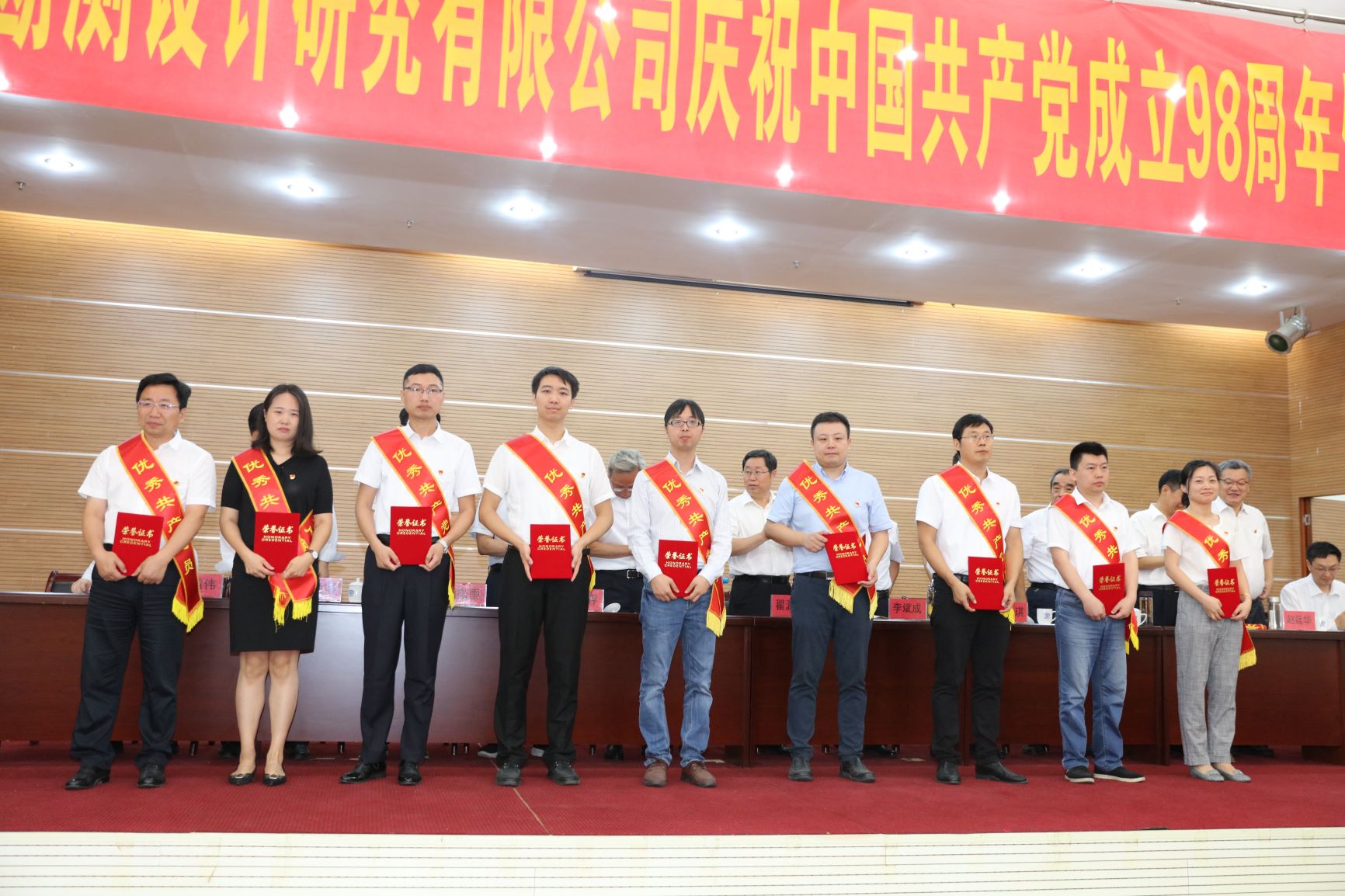 會議由公司黨委副書記、勘測公司總支書記、董事長趙健倉同志主持,黨委委員、設計公司總經理朱太山同志宣讀了公司黨委表彰決定。楊華軍等41名優秀黨員、何桂平等2名優秀黨務工作者及工程設計一院黨支部等5個先進黨支部代表身披綬帶上臺領取了榮譽證書、獎牌;11名新黨員面對黨旗莊嚴宣誓;設計公司耿昕、勘測公司的周子東作為優秀黨員代表在會上進行典型發言;設計公司申黎平、勘測公司張慶功作為新黨員代表進行發言。