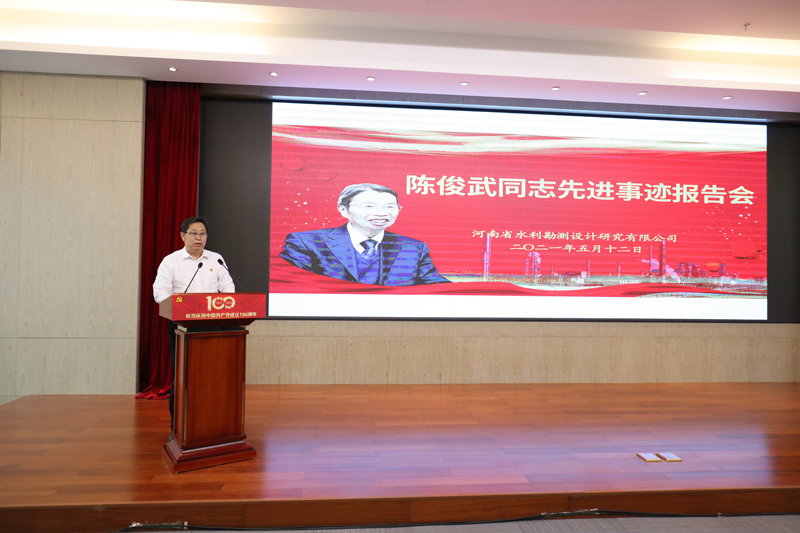 尊崇英雄,敬仰楷模,是公司多年來行穩致遠的精神動力。在全黨上下深入開展黨史學習教育,貫徹習近平新時代中國特色社會主義思想和黨的十九大精神的重要時期,為充分發揮榜樣的示范引領作用,2021年5月12日,公司隆重舉行了“時代楷模”陳俊武院士事跡報告會。報告團由中石化洛陽工程有限公司洛陽基地黨工委書記郭彥民,資深專家、陳俊武院士的助手、80歲的陳香生同志等5名成員組成。會議由公司黨委委員、總經理朱太山同志主持,黨委書記、董事長翟淵軍,副總經理何杰、黎春松、趙廷華、韓進舟,工會主席閆汝華,及員工300多人參會。