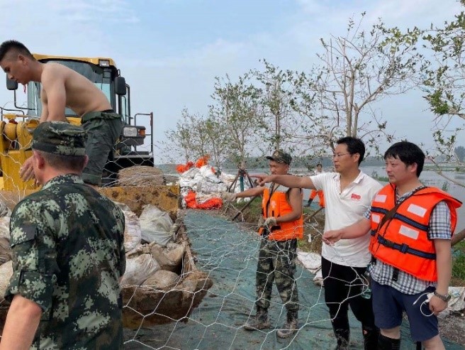 7月19日-23日,共產黨員、技術副總監王志軍隨同河南省防汛檢查組奔赴安陽、濮陽進行防汛檢查,冒雨對林州市的弓上水庫、小南海水庫、彰武水庫、南水北調安陽河倒虹吸等工程和鶴壁市盤石水庫的防汛進行技術指導,查看落實下游群眾轉移安全情況。