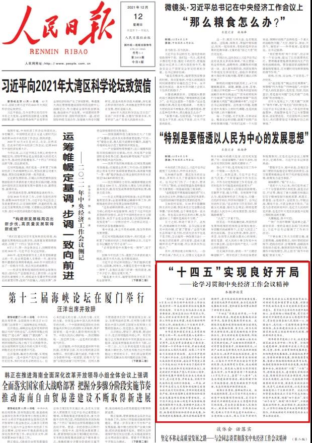 《人民日?qǐng)?bào)》自12月12日起,連發(fā)5篇評(píng)論員文章,論學(xué)習(xí)貫徹中央經(jīng)濟(jì)工作會(huì)議精神。