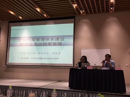 接著,國家檔案局特聘專家、中國人民大學(xué)檔案學(xué)院教授宮曉東主講。宮教授分別從“企事業(yè)單位檔案管理體系建設(shè)與運行”及“建設(shè)項目檔案管理、迎檢驗收”兩個方面進行了詳細的講解。授課內(nèi)容不僅涵蓋了企事業(yè)單位檔案管理規(guī)定、文件運行過程的控制與歸檔標(biāo)準(zhǔn)的細化、檔案分類與編號方式的改進、檔案保管期限到期后的再鑒定及檔案工作考核,還涉及到重大建設(shè)項目檔案管理規(guī)定與標(biāo)準(zhǔn)、工程建設(shè)項目檔案工作協(xié)調(diào)機制、檔案專項驗收的準(zhǔn)備工作等。在培訓(xùn)過程中,宮教授通過深入淺出的講解和大量生動案例的引用,幫助參會人員理解和領(lǐng)會,授課效果良好。