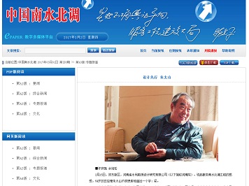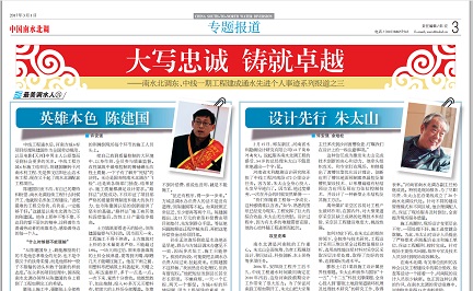 3月1日,《中國(guó)南水北調(diào)》報(bào)及其網(wǎng)頁(yè)版(epaper.nsbd.cn)均刊發(fā)了采訪我公司總經(jīng)理朱總的專(zhuān)題報(bào)道《設(shè)計(jì)先行朱太山》。