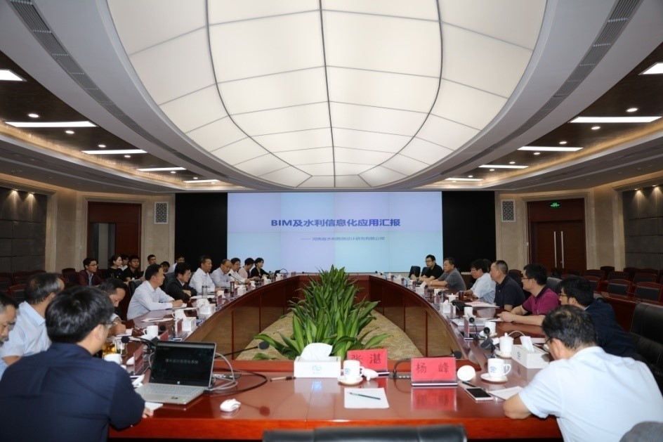劉偉平總工一行首先聽取了我公司《BIM技術在水利工程中的應用及水利信息化建設發展情況》的匯報,并對BIM技術在水利行業的發展情況、應用過程中提高設計產品質量、效率情況,以及在工程數字化移交、運行維護管理中的應用情況、存在問題等進行了深度討論,隨后又聽取了我省172項全國重點水利工程之一的-出山店水庫工程BIM及信息化應用情況的專題匯報,對我公司在BIM技術及信息技術等新技術應用方面取得的成績給予肯定,并希望我公司在今后的工程設計過程中繼續進行新技術的探索和應用,通過不斷學習調研、實踐、探索出一條智慧水利新路子,從設計階段延伸到工程全生命周期的應用,推動河南水利在新技術的應用水平而努力。同時也要求我公司在近期即將在信陽出山店水庫舉行的全國水利工程信息化建設現場交流會上做《BIM與信息化技術在水利工程建設中的創新應用》的主題發言。