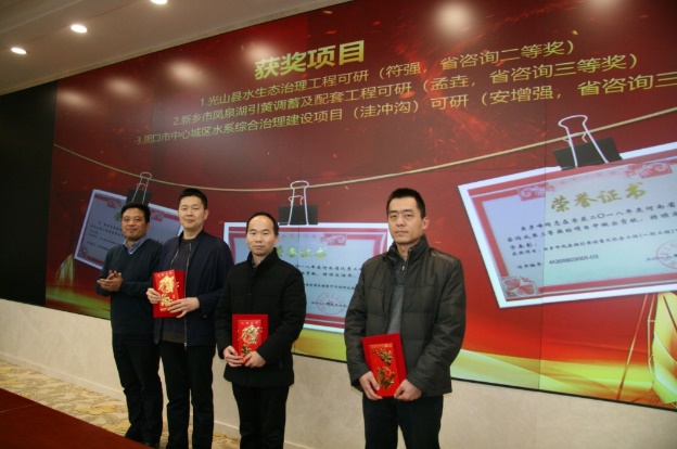 會議首先進行了水環境院年度表彰活動,在歡樂的氣氛中對我院2018年的優秀設代團隊、優秀設總、優秀員工、獲獎項目及數字化創新應用獲獎人員分別進行了表彰,并頒發了證書和獎金。2018年一路走來,我們不會忘卻千里驅馳的風塵仆仆,不會忘卻烈日嚴寒中的極致堅守,我們不畏艱難,始終昂首并肩,攀登與共,涌現出了諸多優秀團隊及員工,他們是銳意進取的先鋒,是恪盡職守的典范,是勇于擔當的楷模,是水環境院全體員工學習的榜樣。