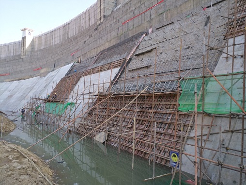 石漫灘水庫位于河南省舞鋼市境內的淮河上游洪河支流滾河,水庫控制流域面積230km2,總庫容1.2億m3,工程規模為大(2)型,是一座以工業供水、防洪為主,結合灌溉、旅游、養殖等任務的綜合利用水庫。大壩壩型為全斷面碾壓混凝土重力壩,2012年8月,石漫灘水庫鑒定為三類壩。