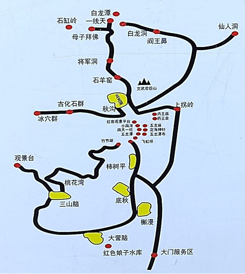 秋溝景區位于新鄉市輝縣南寨鎮境內,總面積14平方公里。景區三面環山,海拔800多米。景區內山高林密,峽谷壁垂,主要有五龍峽、五龍潭、南天一柱、小南海、紅色娘子水庫、桃花灣等景點。因為過去溝內盡是楸樹,故取名為楸溝,后簡化為秋溝。