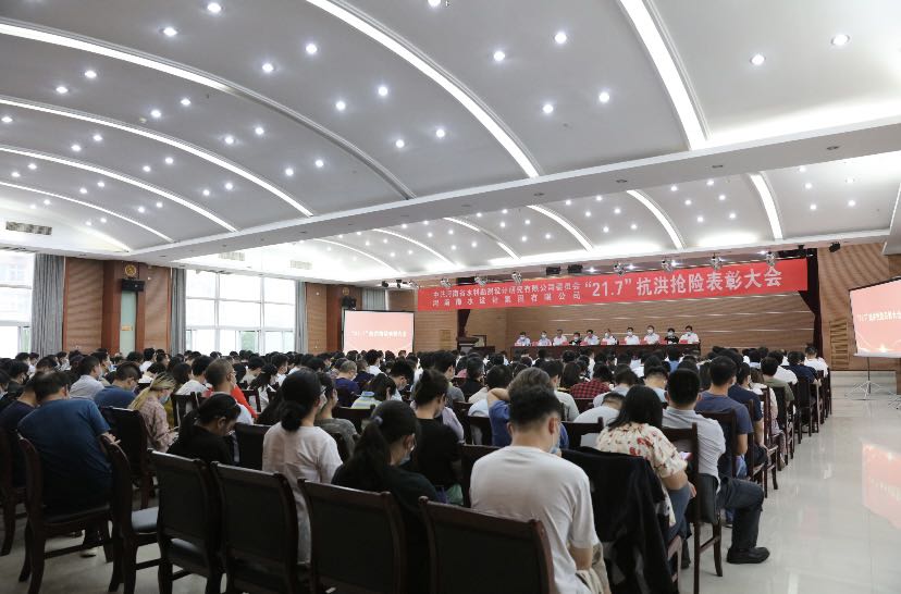 2021年9月24日下午,豫水設計公司在3樓會議室隆重舉行“21.7”抗洪搶險表彰大會,表彰在抗洪搶險中做出突出貢獻的先進共產黨員和先進個人。會議由總經理朱太山主持,豫水設計公司全體員工330多人參加了會議。