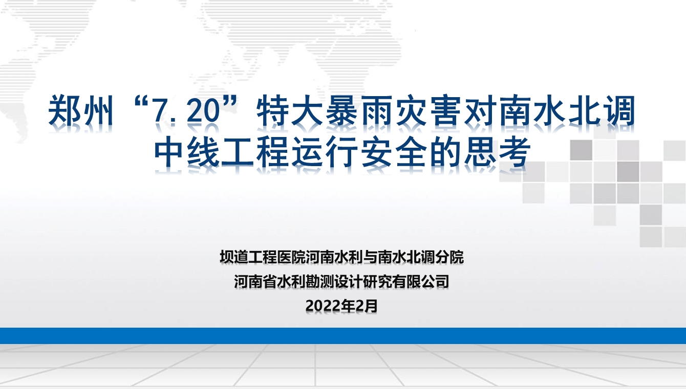 河南省水利勘測設計研究有限公司董事長翟淵軍,《鄭州“7.20”特大暴雨災害對南水北調中線工程運行安全的思考》;