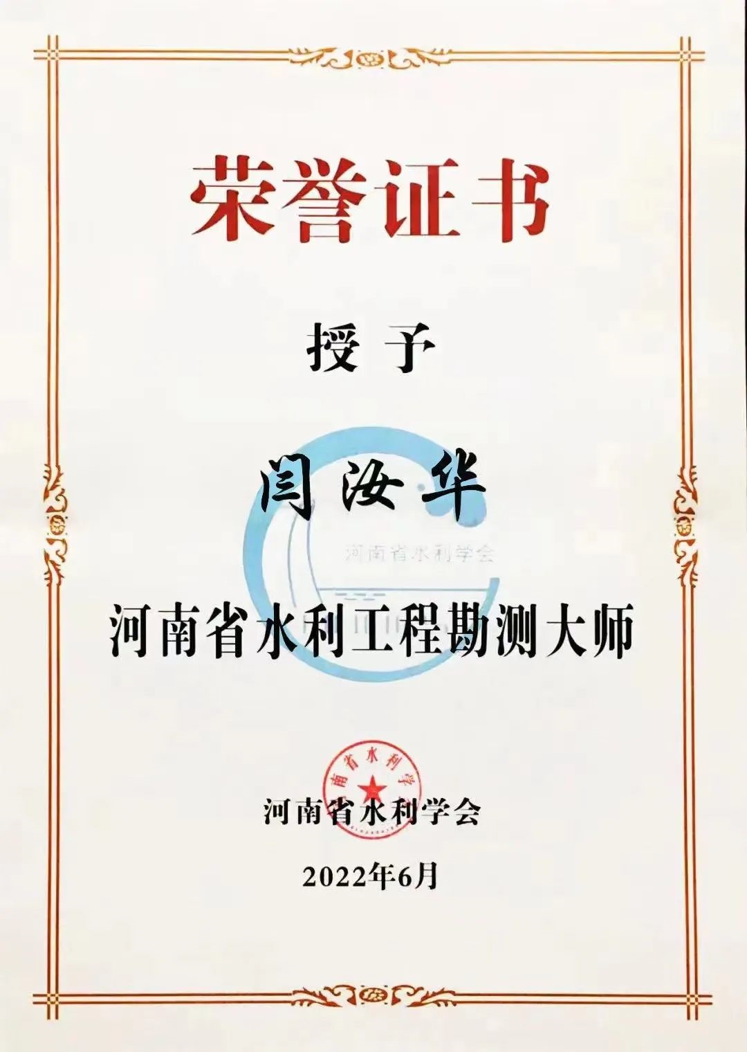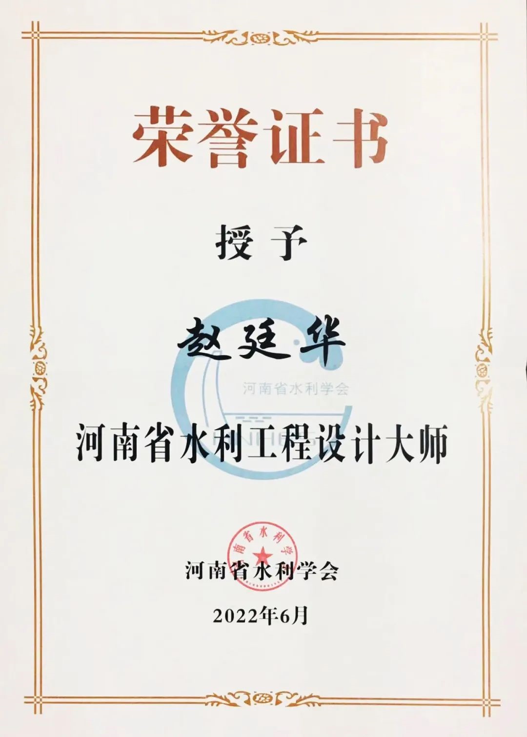 6月21日,河南省水利學會在鄭州舉行2022年學術年會,會上對評選出的十位河南省水利大師進行表彰。我公司副總經(jīng)理趙廷華同志榮獲河南省水利工程設計大師榮譽稱號,監(jiān)事會主席、技術副總監(jiān)閆汝華同志榮獲河南省水利工程勘測大師榮譽稱號。