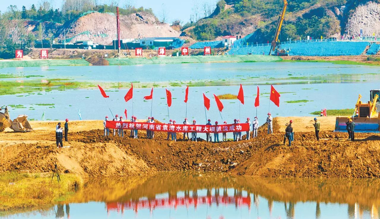 河南省袁灣水庫工程大壩截流,主體工程全面開工。