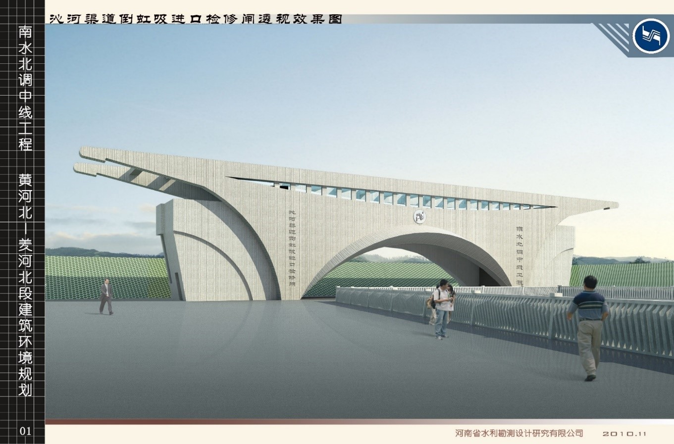 南水北調(diào)中線工程總干渠控制性建筑物有其固有的自身特點(diǎn),其結(jié)構(gòu)布局須滿足水工建筑物設(shè)計(jì)規(guī)范,以及閘、機(jī)、泵等設(shè)備安裝的要求。建筑景觀設(shè)計(jì)專業(yè)需要與其他相關(guān)專業(yè)進(jìn)行多方面、多頻次的對(duì)接與協(xié)調(diào),將建筑景觀設(shè)計(jì)方案與水工建筑設(shè)計(jì)巧妙結(jié)合,達(dá)到“實(shí)用、經(jīng)濟(jì)、美觀”的效果。