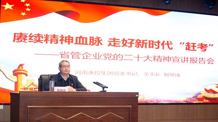 2022年12月12日下午,公司黨委書記、董事長翟淵軍帶領公司班子成員現場參加了水投集團舉辦的二十大精神報告會,各支部也組織支部黨員在線參加了學習。會上,水投集團黨委書記、董事長楊繼成作了《賡續精神血脈 走好新時代“趕考”路》的報告。報告從大會主題及主要成果、過去5年工作和新時代十年偉大變革、馬克思主義中國化時代化、中國式現代化、全面建設社會主義現代化國家的目標任務、堅持黨的全面領導和全面從嚴治黨、應對風險挑戰、傳承弘揚紅旗渠精神等8個方面對黨的二十大精神進行了全面解讀和輔導。報告緊扣主題、內涵豐富、邏輯嚴謹,對廣大黨員準確把握二十大精神有很強的啟迪作用,對進一步落實落細二十大精神有很強的指導意義。