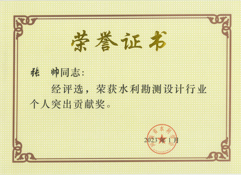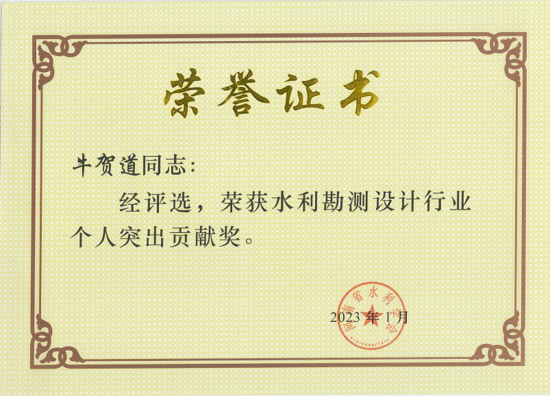 為鼓勵水利科技工作者開拓創新,2022年11月,河南省水利學會在全省開展2022年度個人突出貢獻獎評選活動,19名同志被評為勘測設計類個人突出貢獻獎,公司技術副總監牛賀道和工程設計二院張帥兩位同志獲此殊榮。