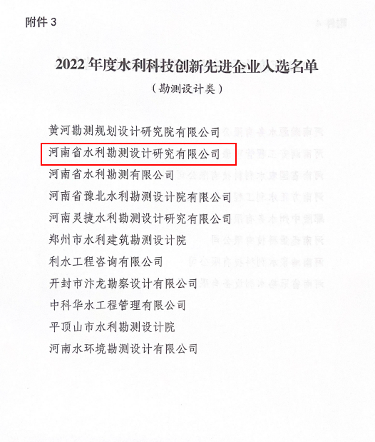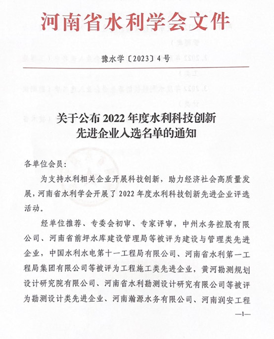 為支持水利企業(yè)開展科技創(chuàng)新,助力經(jīng)濟(jì)社會(huì)高質(zhì)量發(fā)展,河南省水利學(xué)會(huì)自2022年11月開展了2022年度水利科技創(chuàng)新先進(jìn)企業(yè)評(píng)選活動(dòng)。經(jīng)激烈角逐,共有11家企業(yè)入選,豫水設(shè)計(jì)公司被評(píng)為“勘測(cè)設(shè)計(jì)先進(jìn)企業(yè)”。