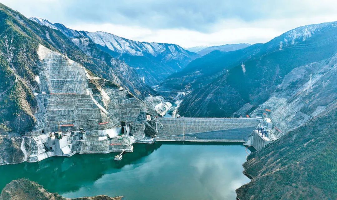 在四川省甘孜藏族自治州雅江縣,雅礱江兩河口水電站大壩填筑到頂。人民日?qǐng)?bào)記者 王明峰攝