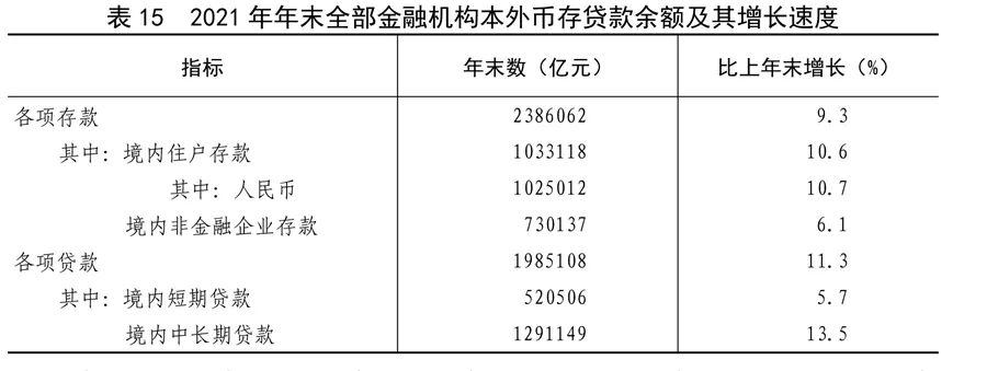 全年社會融資規模增量31.4萬億元,按可比口徑計算,比上年少3.4萬億元。年末社會融資規模存量314.1萬億元,按可比口徑計算,比上年末增長10.3%,其中對實體經濟發放的人民幣貸款余額191.5萬億元,增長11.6%。年末全部金融機構本外幣各項存款余額238.6萬億元,比年初增加20.2萬億元,其中人民幣各項存款余額232.3萬億元,增加19.7萬億元。全部金融機構本外幣各項貸款余額198.5萬億元,增加20.1萬億元,其中人民幣各項貸款余額192.7萬億元,增加19.9萬億元。人民幣普惠金融貸款余額26.5萬億元,增加5.0萬億元。