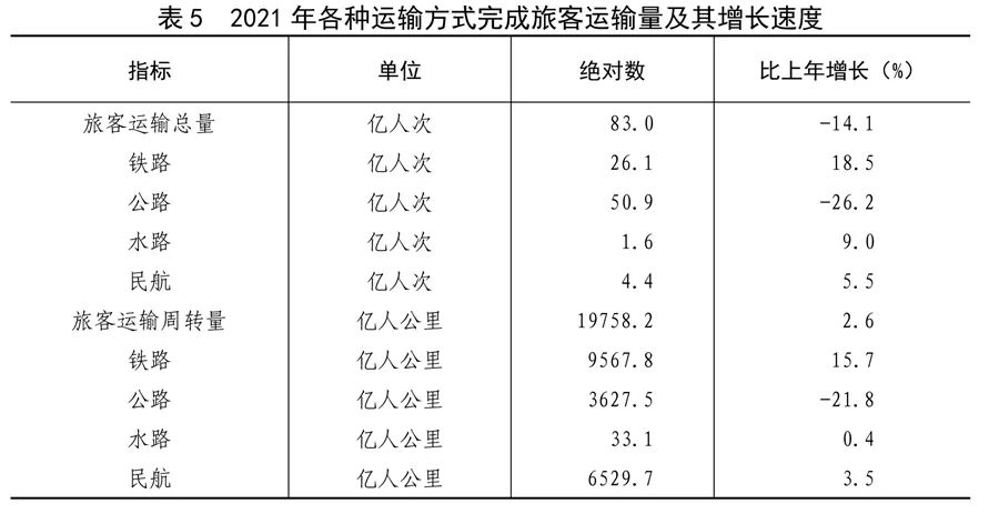 全年旅客運輸總量83億人次,比上年下降14.1%。旅客運輸周轉量19758億人公里,增長2.6%。